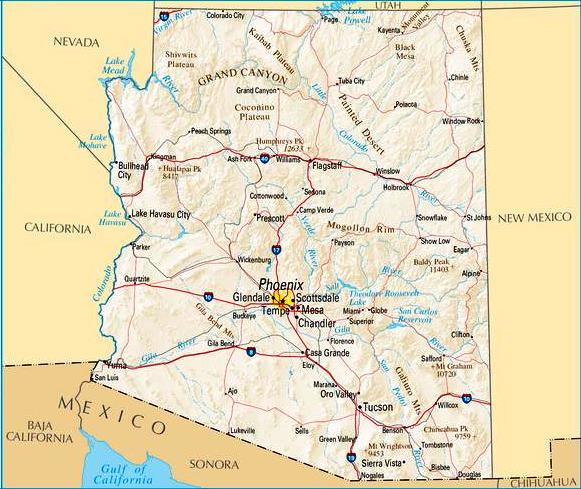 Arizona (uto-aztekisch/O'odham für "kleine Quelle") ist ein Bundesstaat im Südwesten der USA. Die Hauptstadt Arizonas ist Phoenix.