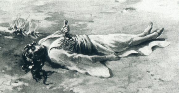 Diesen Dolch stößt Benda sich ins Herz, als Selim Agha sie bei dem Überfall auf Hassan Ardschir Mirza, bei dem dieser und seine Begleiter getötet werden, fortschleppen will.