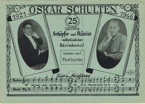 Oskar Schulten war ein Komponist, der 1946 sein 25-jähriges Jubiläum als Schöpfer und Künder volkstümlicher Kleinkunst beging. Im Selbstverlag gab er Künstleransichtskarten mit Kompositionen heraus.